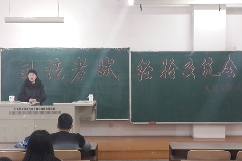 近两年来,我校文法学院法学专业本科生的司法考试通过率屡创新高,针对学生日益高涨的司法考试热情,为进一步加强对学生的考前指导,3月18日,文法学院法学专业在丹青楼301室举行了司法考试经验交流会,会议由法学专业副主任朱文玉老师主持,专业秘书张镝老师出席会议,会议邀请高分通过司法考试的刘兴晨和李浩同学与在校生进行了经验交流。