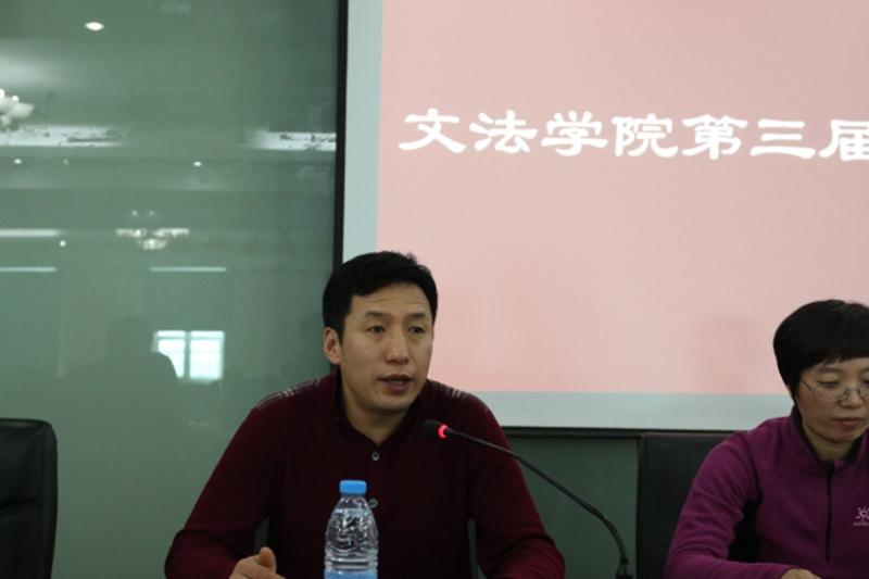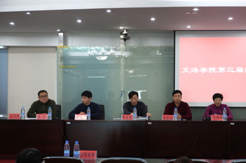 2015年1月14日上午,文法学院第三届教职工代表大会在行政楼11楼会议室召开。