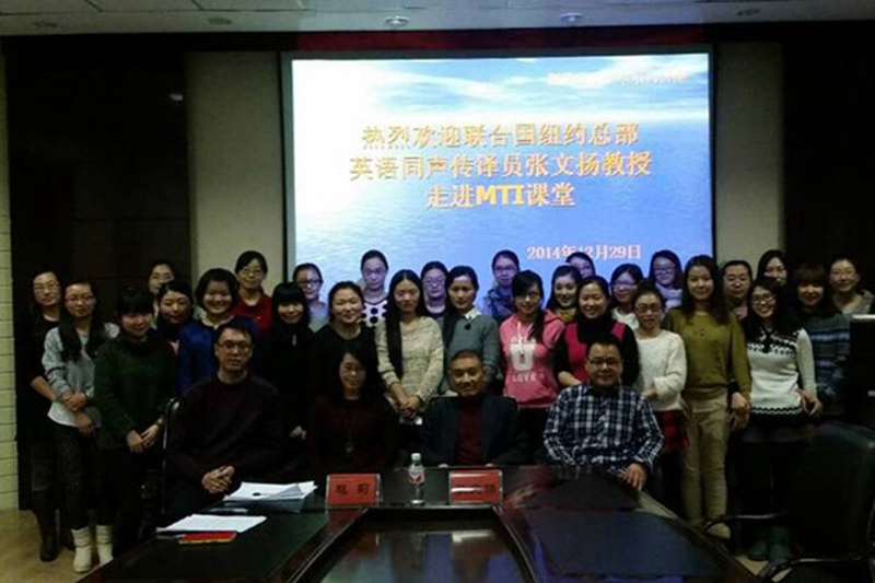 张文扬译员声情并茂,理论结合实际,将三十多年的职业积累浓缩在两个小时的报告中,报告会内容丰富、事例生动受到了参会人员的一致好评。报告结束后,张文扬译员与现场师生进行了热烈的交流,耐心细致地回答了同学们提出的问题,并和大家亲切合影留念,报告会在和谐的气氛中结束。(张俊兴)