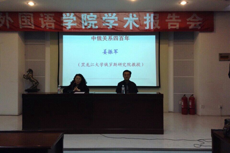 姜教授在百忙之中做客我院俄语系,从追溯中俄历史关系的角度出发,为我院学生扩展俄语学习视角、加深俄语学习的广度和深度奉献了一场精彩绝伦的学术讲座。广大学生在会后纷纷表示,从姜教授幽默生动地梳理中俄近四百年的历史过程中,感触颇深,获益良多,在以后的外语学习过程中,要从全方位多角度出发,习好语言,学好本领,为以后中俄关系的发展尽一份力,添一份彩。(王晓华)
