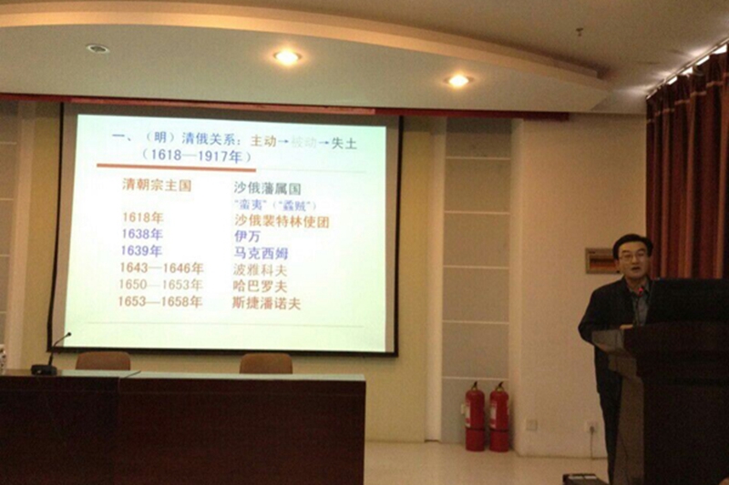 为进一步丰富学生的历史文化素养,加大加深对中俄关系历史的了解,2014年12月3日下午,外国语学院邀请到了黑龙江大学俄罗斯研究院副院长姜振军教授为广大俄语系师生举办了一场以“中俄关系四百年”为主题的学术报告。报告由外国语学院俄语系主任吴芳教授主持,俄语系全体师生参加了此次报告会。近两个小时的学术报告,姜振军教授用其形象生动的语言,为东林学子奉献了一场内容丰盛的学术盛宴。