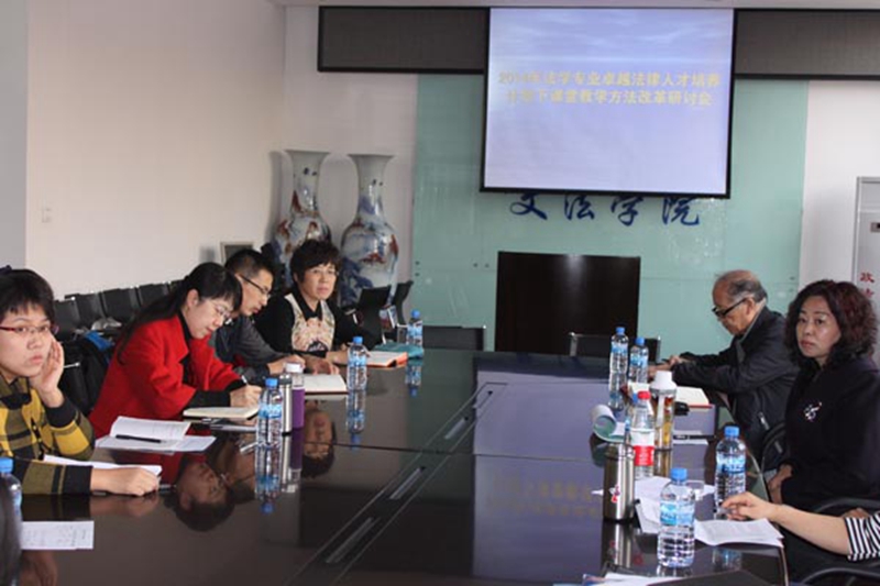 2014年11月19日下午,文法学院法学专业在文法学院会议室召开了以“卓越法律人才培养计划下法学专业课堂教学方法改革”为主题的教学研讨会。教务处副处长姜中珠和教学科岗位负责人冯昌军、督导许正霖、文法学院副院长于景辉和法学专业的全体老师参加了研讨会,法学专业副主任朱文玉主持会议。