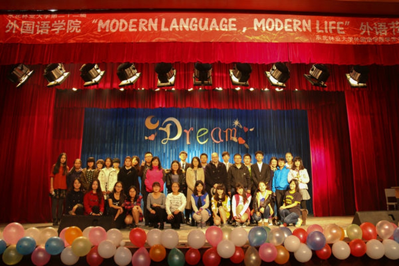 10月29日晚18时,外国语学院在小礼堂成功举办了以“MODERN LANGUAGE,MODERN LIFE”为主题的第二十二届外语节开幕式。外国语学院英语系主任赵莉教授、俄语系主任吴芳教授、日语系主任王佳音副教授,院团委书记、2011级政治辅导员郭林老师,学生会秘书长、2014级政治辅导员张刚老师,2012级政治辅导员李婧坤老师以及2013级政治辅导员袁野老师莅临本次开幕式。校学生会主席窦帅帅以及其他兄弟学院学生会主席应邀出席,与外国语学院2014级新生及国际交流学院的外国留学生一同观看了本次开幕式。