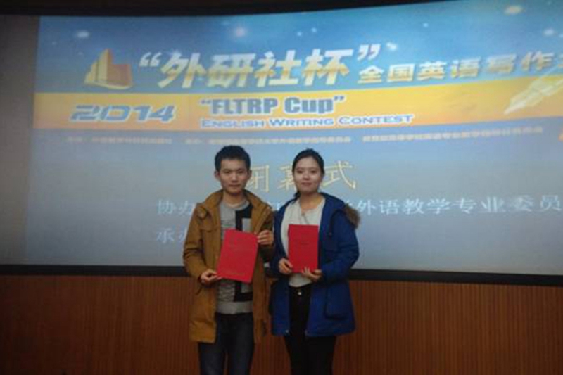 10月18日,由外语教学与研究出版社主办的第二届“外研社杯”全国英语写作大赛黑龙江赛区复赛举行。来自全省23所高校的53名选手参加了此次比赛。比赛全程采用外研社开发的在线写作和评估系统,最终评出特等奖3人,一等奖8人,二等奖15人,三等奖27人。我校外国语学院英语系2013级学生孙稼宝与园林学院风景园林专业2012级学生王馨笛双双获得一等奖。