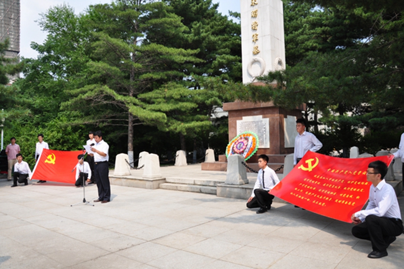 2014年7月1日下午两点,在建党93周年之际,工程技术学院全体教工党员、学生党员、部分入党积极分子代表赴哈尔滨烈士陵园,向朱瑞将军墓敬献花圈,并在烈士墓前举行了隆重的入党宣誓仪式。