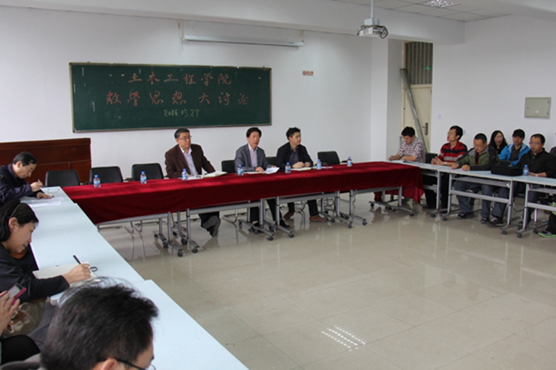 土木工程学院于5月27日14点在主东413开展了教学思想大讨论活动。教务处副处长刘志明应邀参加会议,土木学院石振武书记、全院教师以及学生代表参加了会议,会议由张爱民副院长主持。