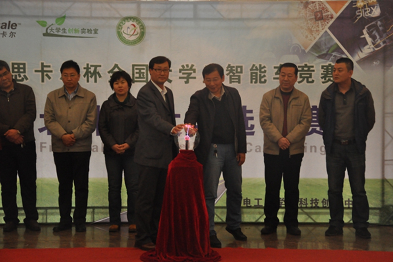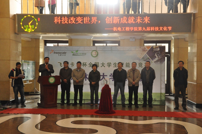 随后,王维宏书记和宋文龙院长共同按动水晶球,标志着本届科技文化节正式启动。仪式结束之后,嘉宾和观众在主楼方厅观看了2014年全国大学生“飞思卡尔”智能车竞赛东北林业大学选拔赛。