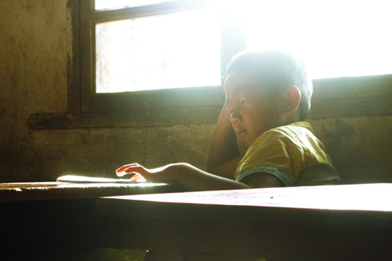 摄影作品《梦中醉弹》作品中的孩子正在听支教老师的音乐课,当时他仿佛听醉了,在温暖的阳光中眯着眼睛,小手指在课桌上情不自禁地弹动着旋律。
