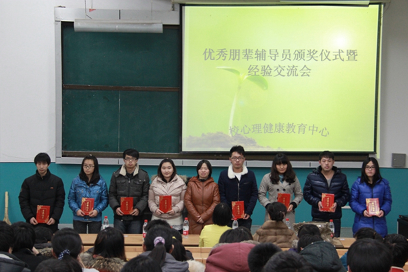为探索有效的心理健康教育工作模式,完善朋辈辅导员选拔、培训、管理、考核体系,按照东北林业大学优秀朋辈辅导员评选方案,由基层学院根据学生日常表现推荐,经心理健康教育中心综合评定,今年评选出58名优秀朋辈辅导员。为表彰先进个人,优化队伍建设,心理健康教育中心于12月5日晚6:30在锦绣楼T301举办了“优秀朋辈辅导员颁奖仪式暨经验交流会”,学生处心理健康教育主管领导、心理健康教育中心全体教师、受表彰的优秀朋辈辅导员及全体2013级朋辈辅导员参加了会议。