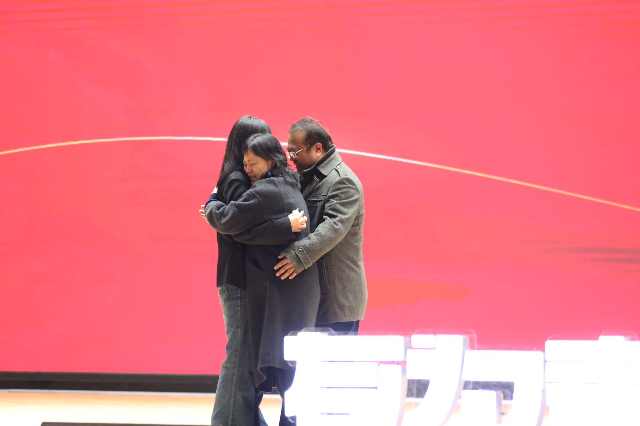 资助,不只是物质的帮扶,更是成长的赋能;教育,不只是责任的落实,更要用心的浇灌、用情的守护。而每一段青春成长的足迹,离不开家校同心的守望与护航。“桃李进步先锋” 王禹萌同学的父母,提前录制了饱含期许的祝福视频,更以一场温暖的惊喜悄然现身会场。“看着你一步步变好,我们真为你骄傲!”话语里满是深情,当王禹萌转身与父母相拥而泣的时,这不仅是属于一个家庭的幸福瞬间,更是材料学院“家校同心,协同育人”最动人的诠释。