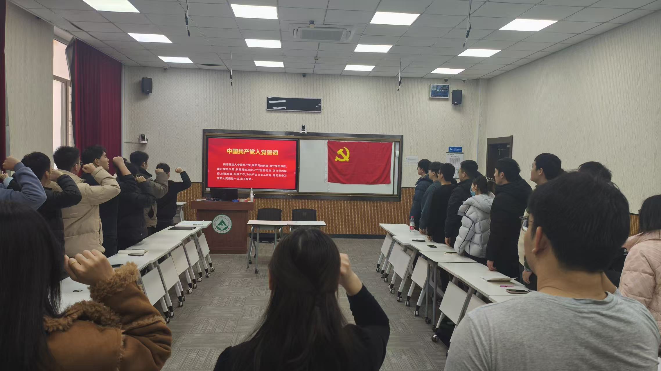 全体党员面向党旗庄严宣誓,砥砺入党初心,表达奋斗决心。
