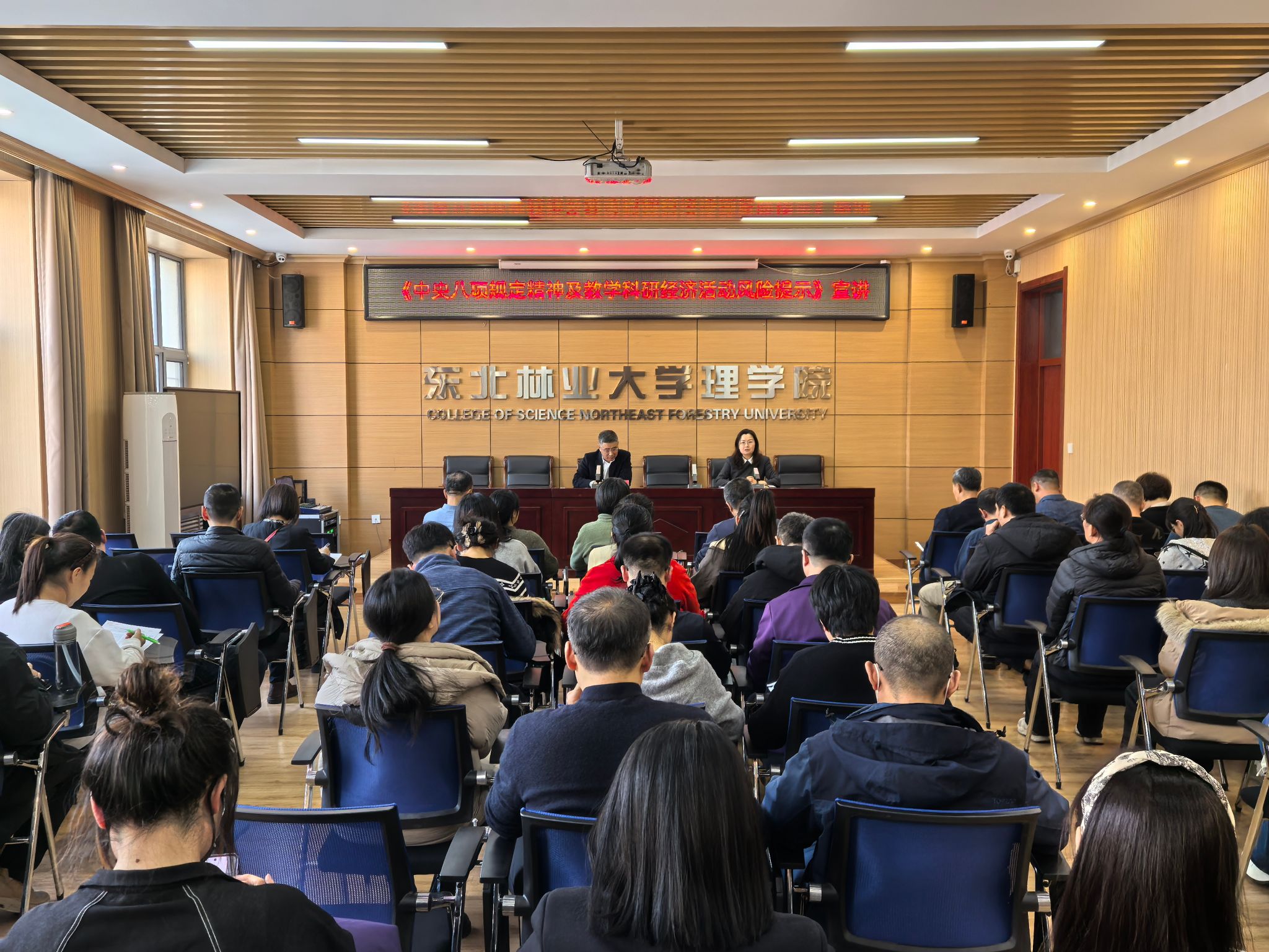 为深入学习贯彻党的二十届四中全会精神,持续抓好中央八项规定精神贯彻落实,推进作风建设常态化长效化,11月12日,学校审计处处长秦金学代表学校纪委办公室(监察处、党委巡察办)、计财处三个职能部门开展送服务到基层宣讲活动,为理学院全院教职工开展了《深入贯彻中央八项规定精神及教学科研经济活动风险提示》宣讲活动。学院党委书记李玉荣主持宣讲会。