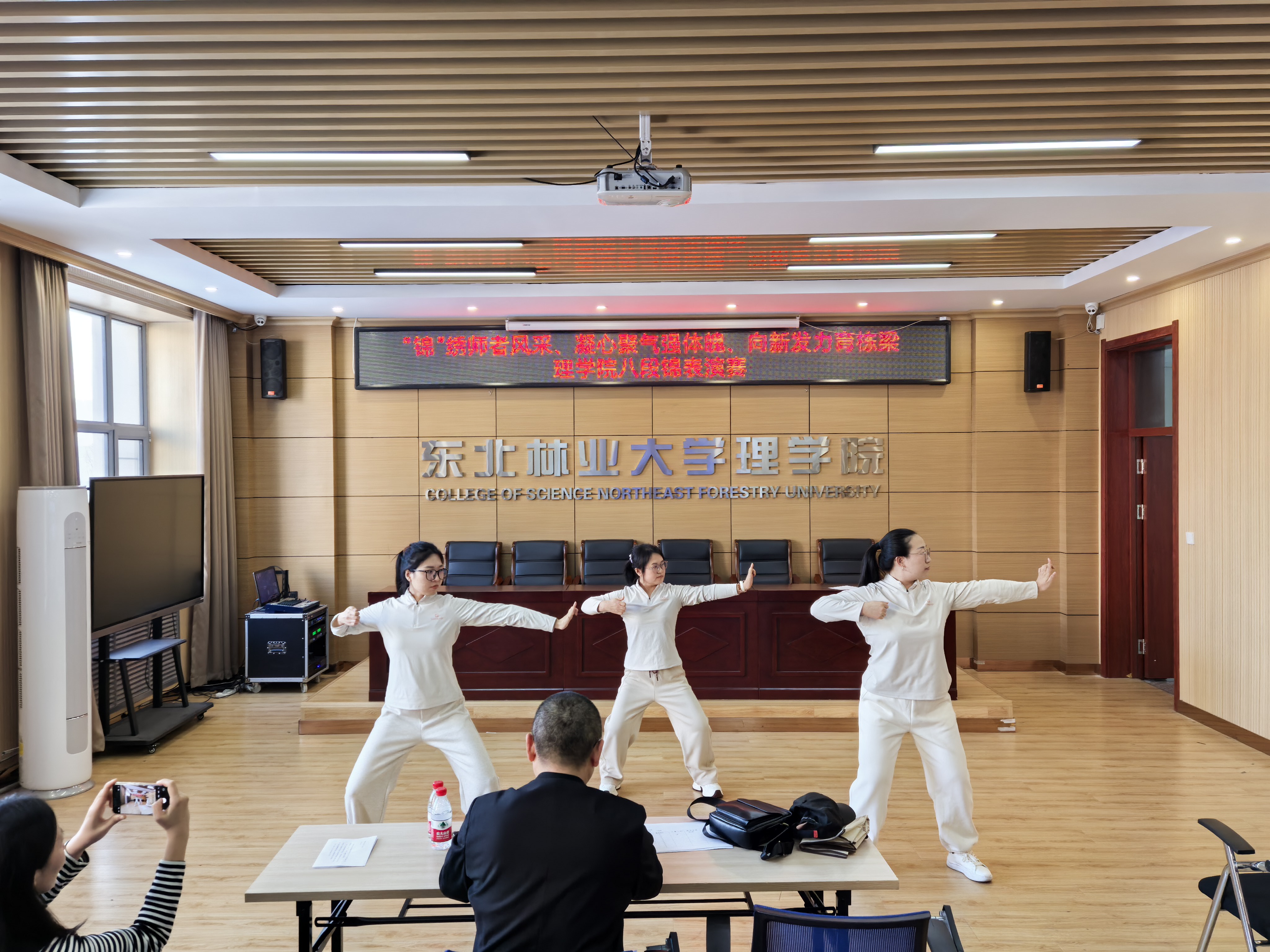 为弘扬中华优秀传统文化,倡导健康生活理念,提升教职工身体素质与团队凝聚力,12月24日下午,理学院工会在锦绣楼举办了以“锦绣师者风采、凝心聚气强体魄、向新发力育栋梁”为主题的教职工八段锦表演赛。体育部教师张晓龙担任评委。