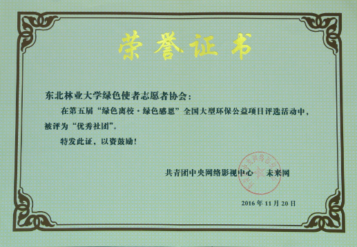 一分耕耘,一分收获。2015年,大学生绿色营暑期社会实践活动——“湿地使者行动”荣获学校暑期社会实践累进成果奖,2016年荣获全国十佳环保社团和全国生态环保领域最高奖项——第七届“母亲河”奖,这也是我省目前唯一的一块奖牌。