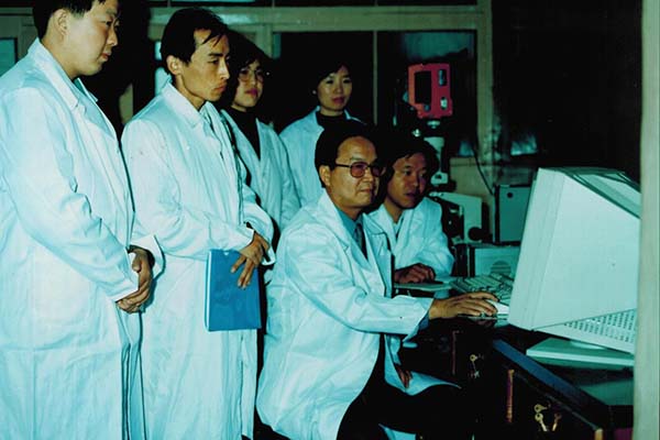中国工程院院士李坚教授(右二)在指导研究生