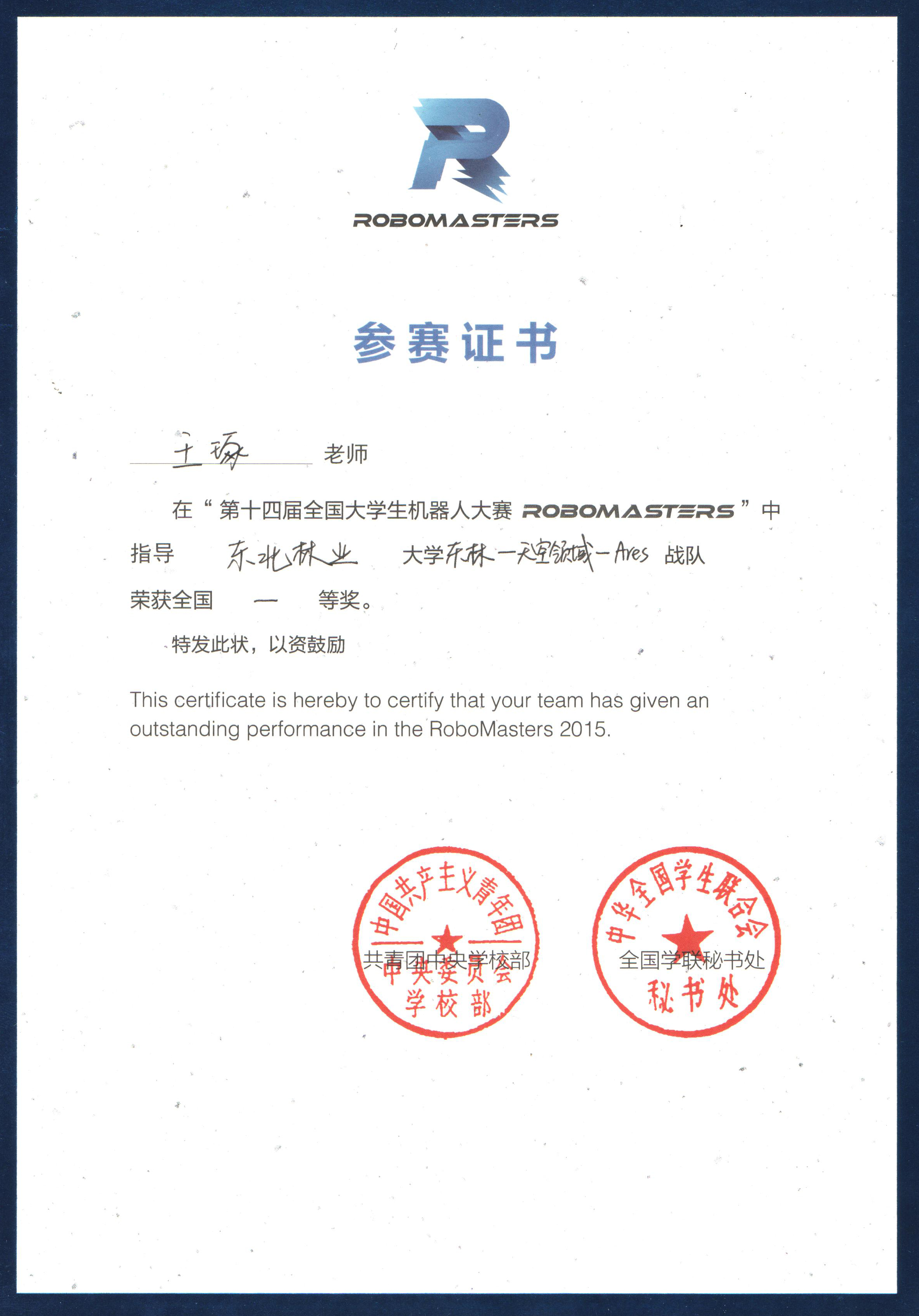 报名、备战、参赛,一切是那样的水到渠成,在这个汇聚了当今科研领域尖端的机器人研发技术大赛上,我校机器人战队力克群雄,首先以黑龙江省第一名的成绩晋级全国总决赛,接着又凭借娴熟的操作技术、精妙的团队配合、强悍的战斗气势、豁达的竞技风度赢得全场的认可,在全国150余所高等院校中脱颖而出,拿下全国一等奖,这也是我省唯一一只获得一等奖的队伍。这一年,东林的“天空领域-Ares战队”被众多高校所记住。