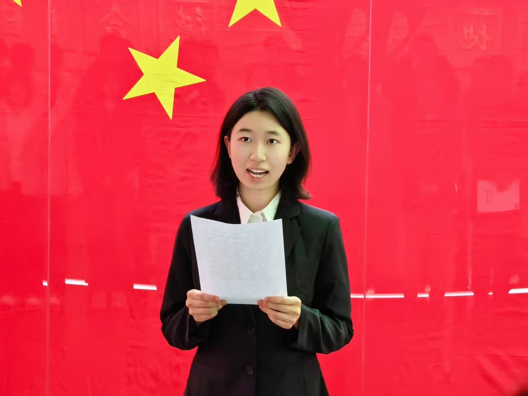在师生分享环节,未来技术学院2025级本科生、退役大学生士兵马沐含泊结合自身军旅生涯,回忆了新兵时期首次观看升旗仪式的经历。她号召同学们扎实学好专业知识,将红色基因融入科研与学习,传承东林精神,以实际行动践行生态报国的青春誓言。