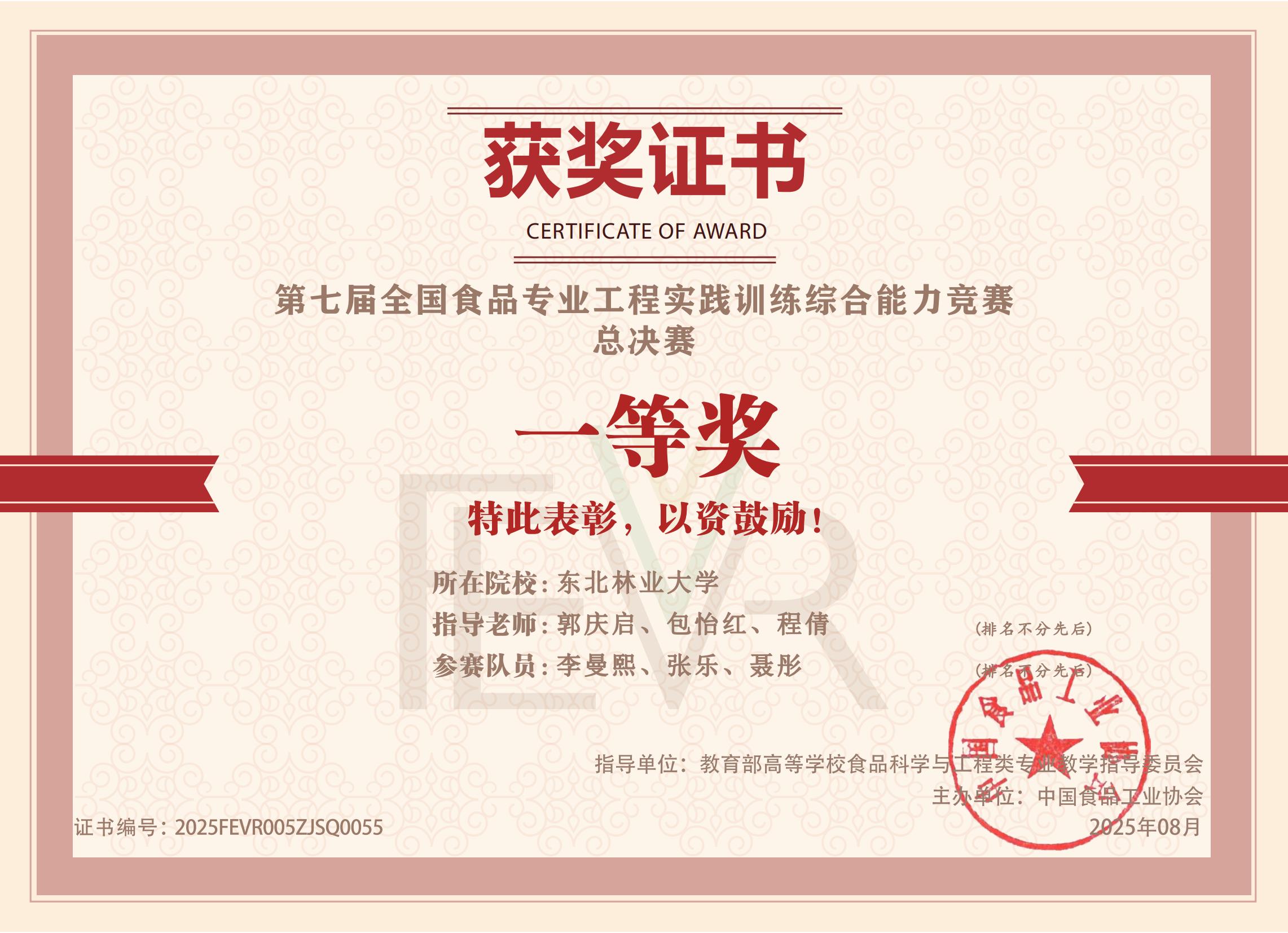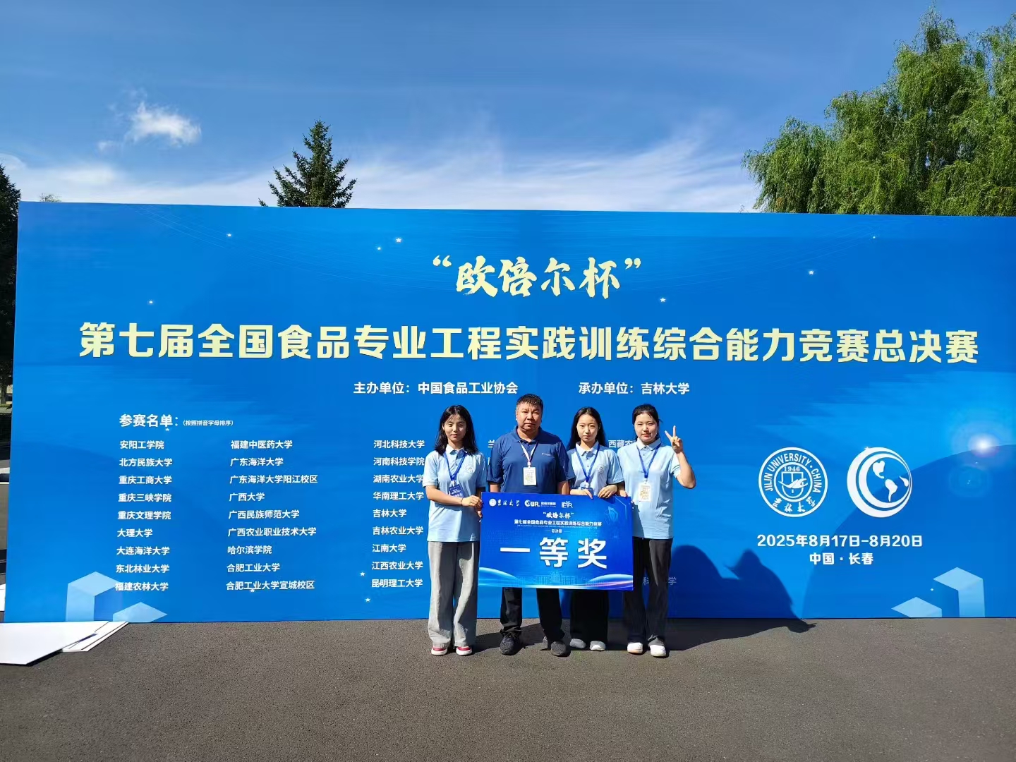 8月17日至20日,第七届全国食品专业工程实践训练综合能力竞赛(总决赛)圆满落幕。由我校生命学院教师郭庆启、包怡红和材料学院教师程倩指导,生命学院食品科学与工程专业的李曼熙、张乐和聂彤三位同学组成的参赛团队斩获全国一等奖,蝉联该项赛事全国总决赛一等奖桂冠。