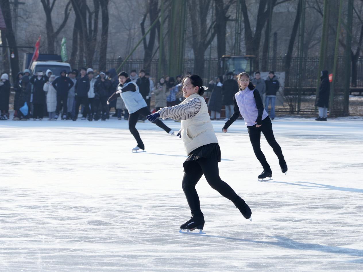 学校大学生艺术团和冰上刀旗队伍演绎的《尔滨的雪》《燃烧的雪花》将活动推向了高潮。