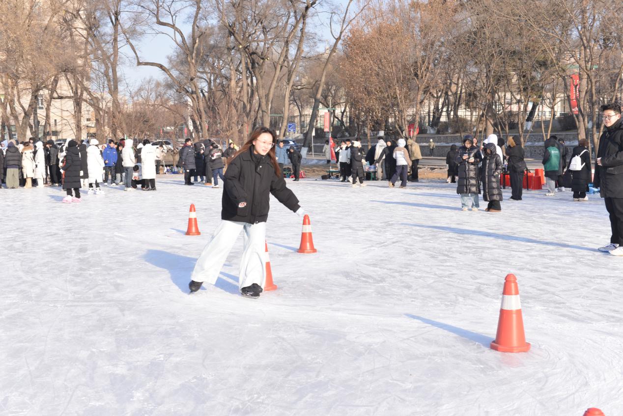 本次冰上运动会内容精彩纷呈、形式新颖多样,赛事分为竞赛项目与趣味项目两大类别,共计8项赛事。其中,冰上竞赛项目涵盖“两圈竞速”“对向追逐”“团体追逐”“接力比赛”“男女混合接力”五大项目,尽显速度与协作的激情碰撞;冰上趣味项目则设有“钻横杆”“蛇形绕桩”“拉雪圈接力”等特色项目,兼具娱乐性与参与感,让师生在冰上尽享运动乐趣。