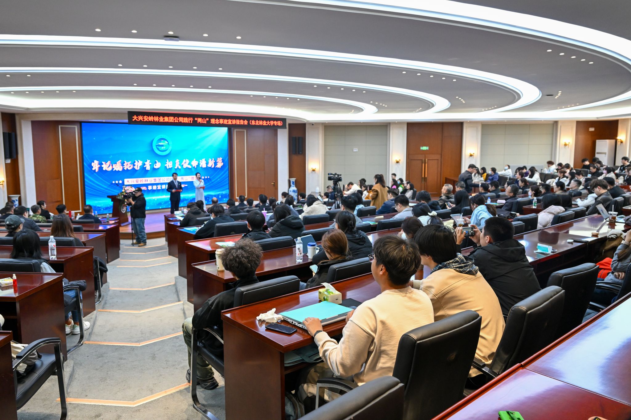 许祥山感谢学校长期以来对大兴安岭林业集团的支持,并介绍了集团的基本情况。他表示,东林智慧早已融入大兴安岭的绿色生态,成为守护北疆林海不可或缺的重要力量。此次宣讲报告会既是一次“两山”理念的再深化,也是一次生态报国的青春邀约。当前大兴安岭林业集团正向着国有林区改革先行示范区建设目标稳步前进,迫切需要专业人才、青年才俊创新力量。他诚挚邀请东林师生做客兴安,考察指导、研究交流。