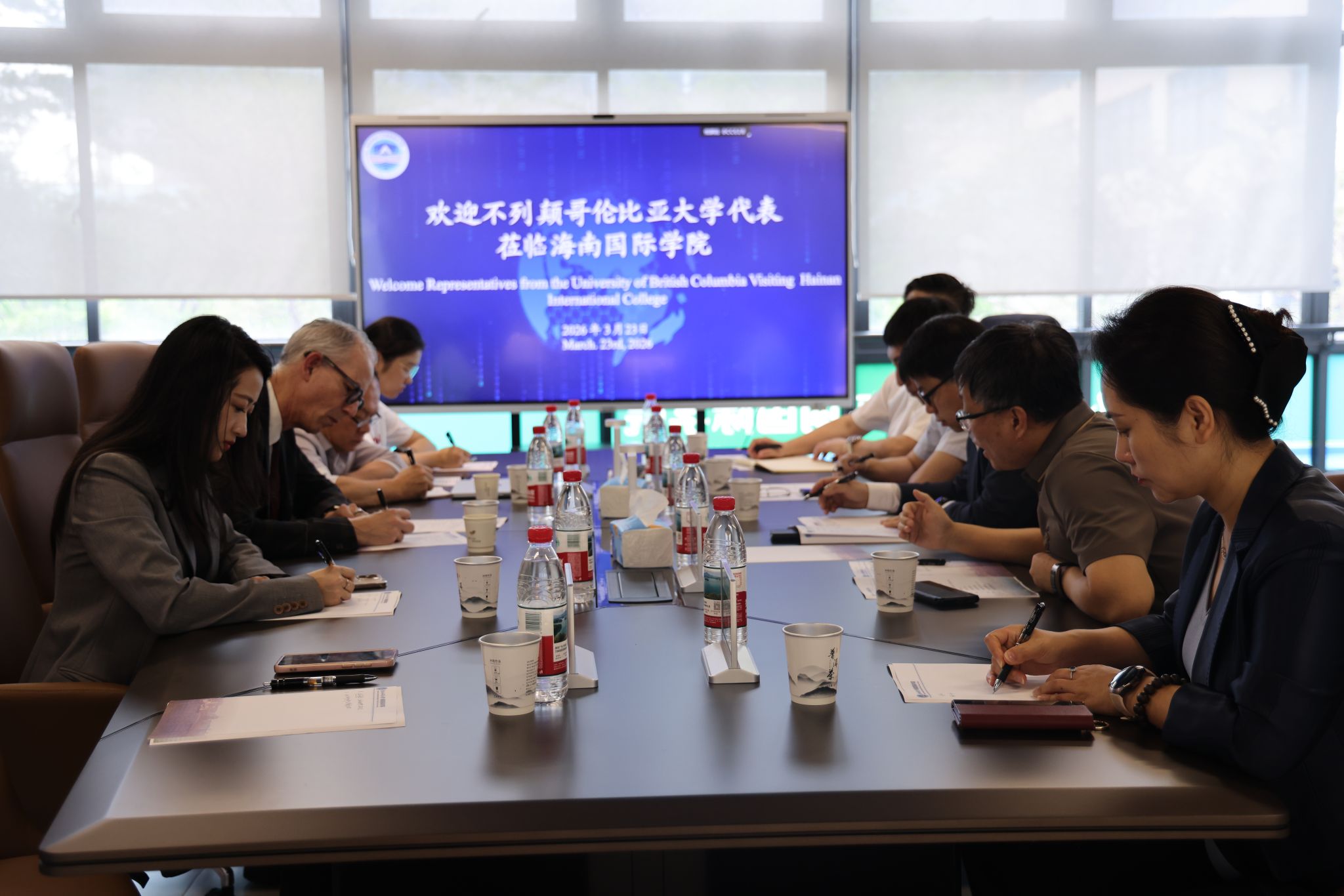 海南国际学院院长刘志明介绍了陵水黎安国际教育创新试验区概况,海南国际学院的建设与发展定位、办学优势特色和国际化办学布局,重点介绍了拟与UBC开展合作的办学机构有关情况。林学院院长张鹏介绍了林学院的学科建设、人才培养及科研成果情况,阐述了学院在森林资源培育、生态保护与修复等领域的优势与特色。