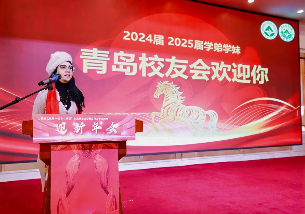 新加入青岛校友会的校友代表李美丽(突尼斯籍)、梁睿轩先后上台发言,分享了他们从东林校园到青岛职场的心路历程,表达了对母校培养的感激之情,以及初入校友会大家庭的归属感与喜悦之情。