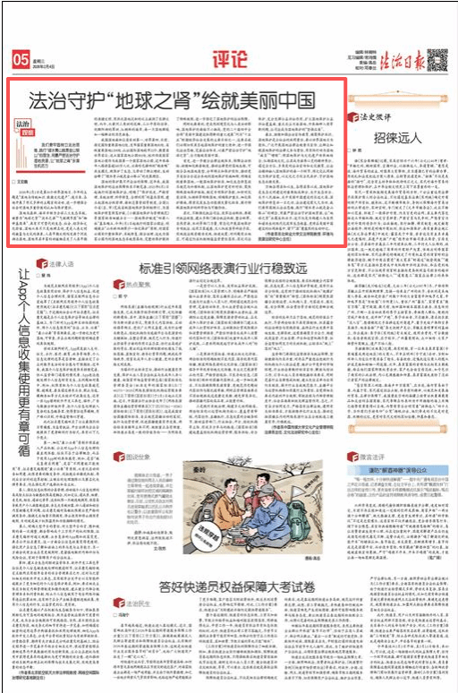 2月2日是第30个“世界湿地日”,2月4日,我校文法学院王宏巍教授理论文章《法治守护“地球之肾”绘就美丽中国》在中央级法治权威媒体《法治日报》刊发,引发生态保护领域与法治界广泛关注。
