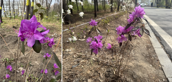 近日,兴安杜鹃“傲雪”新品种和兴安杜鹃良种在校园内首次绽放,上千株盛开的兴安杜鹃点缀在校园小道旁,与春日暖阳交相辉映,成为一道靓丽风景线。