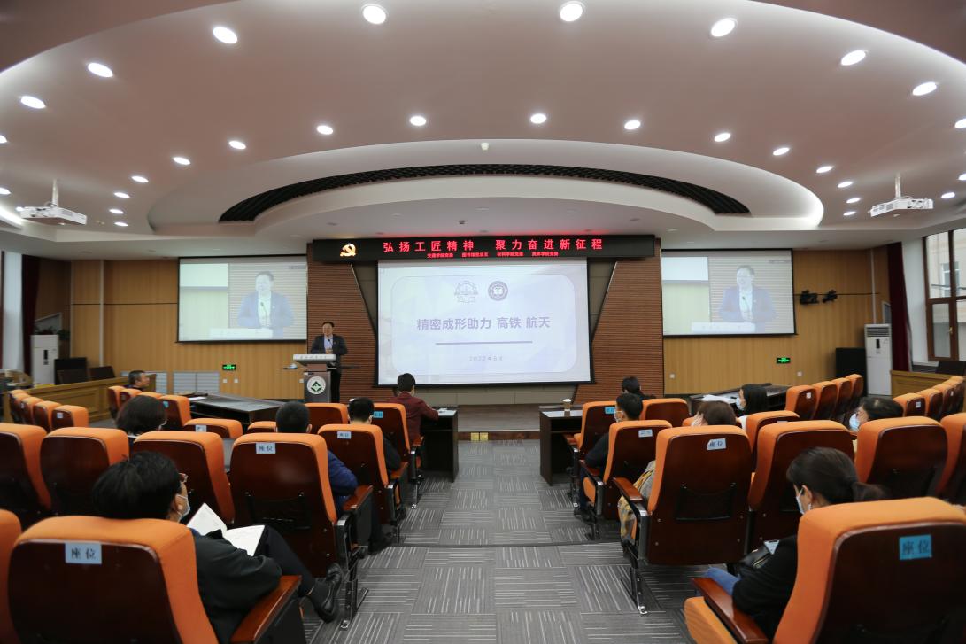 为深入学习贯彻省第十三次党代会精神,进一步弘扬工匠精神,汇聚奋进力量,助力龙江全面振兴全方位振兴,6月1日,学校交通学院、图书馆、材料学院、奥林学院联合举办了“弘扬工匠精神,聚力奋进新征程”的主题报告会,邀请黑龙江省“龙江工匠”荣誉获得者、哈尔滨工业大学材料科学学院王国峰教授作了题为《精密成形助力高铁航天》报告,分享“真材实料育英才,工艺精湛铸重器”的感人事迹。