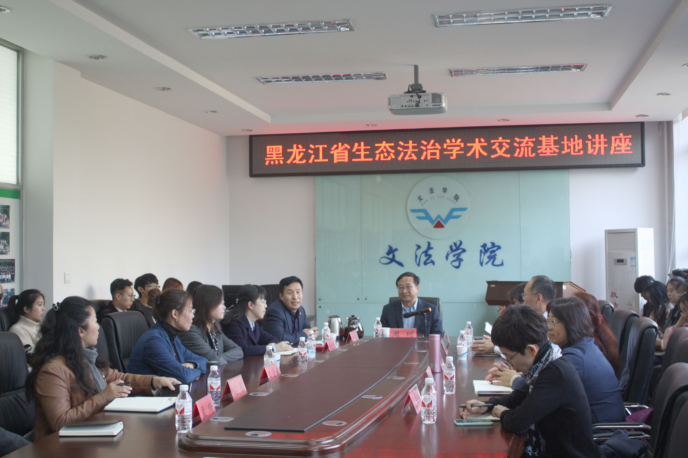 2019年10月23日14时,中国人民大学法学院周珂教授莅临文法学院,发表主题为《生态环境损害赔偿法律问题研究》的讲座。本次讲座由东北林业大学文法学院、黑龙江省生态法治学术交流基地共同主办。文法学院院长李景义教授和副院长朱文玉副教授担任主持。文法学院资深教师、研究生督导周玉华教授和黑龙江省林区中院研究室国成主任参加讲座,法学专业教师以及近80余名研究生慕名前来聆听,文法学院会议室座无虚席。