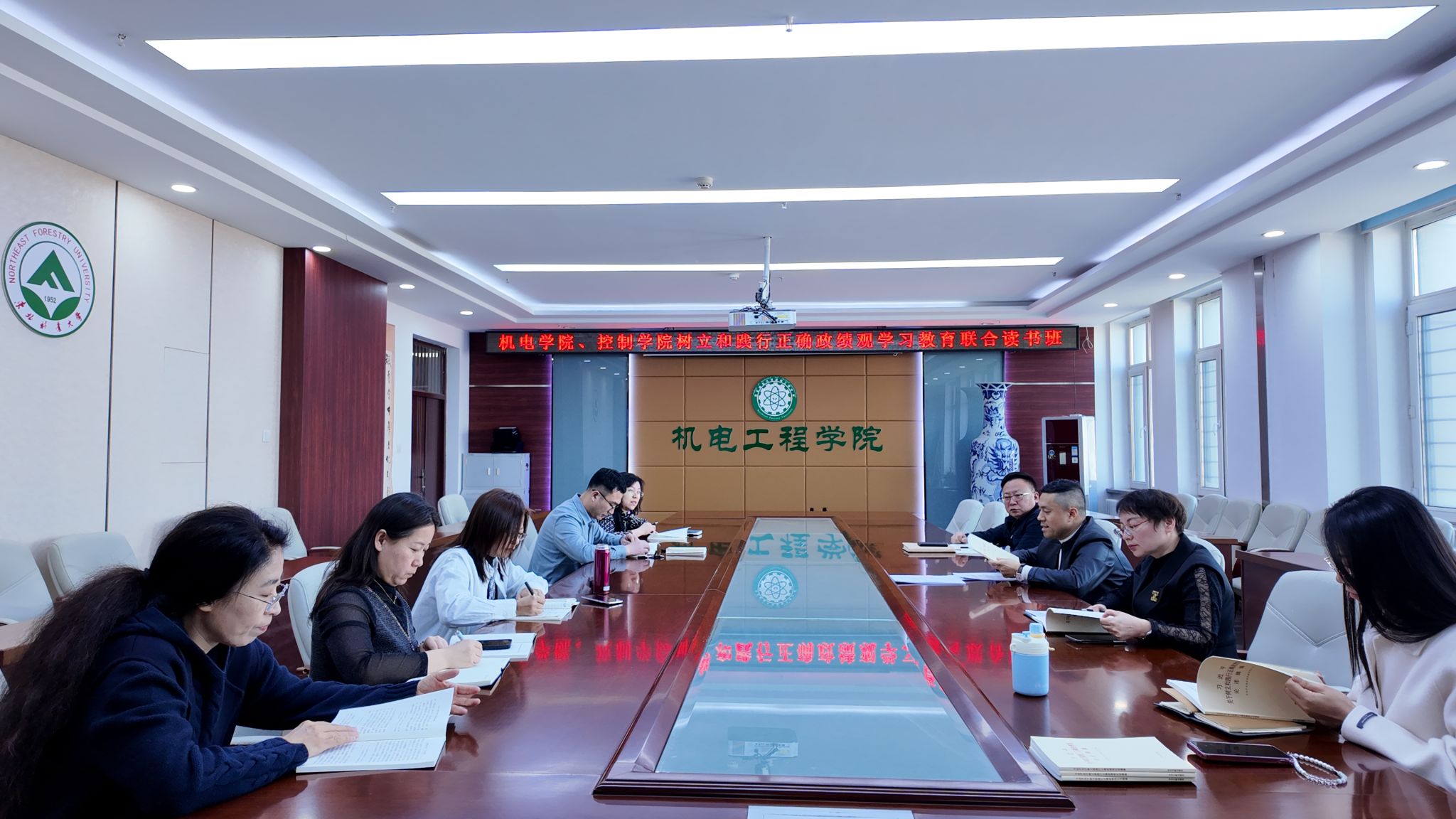 4月1日上午,机电工程学院、控制与信息工程学院在成栋楼7楼会议室,联合举办树立和践行正确政绩观学习教育读书班暨党委理论学习中心组集体学习会。两个学院的两委委员、领导班子成员、组织员参加会议。会议由控制与信息工程学院党委书记王佳彤主持。