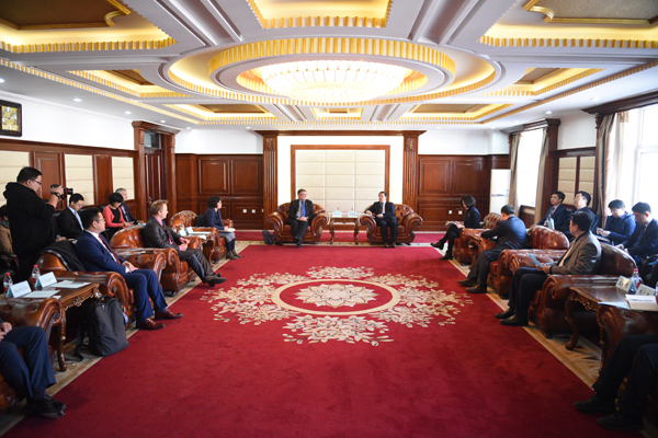 陪同约翰·霍斯金部长到来的还有澳大利亚教育管理集团总裁李新庆等。李新庆在座谈会上就构建中外联合科研机构提出了意见和建议。