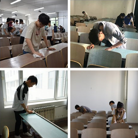 在活动中,全校十四个本科学院对学校锦绣、丹青两所教学楼的所有教室进行清扫,参与劳动的同学分工明确,精诚合作,认真打扫教室的每一个角落,清扫地面、清洁门窗、擦拭桌面和椅背污垢、清空桌内垃圾、清理黑板粉尘,清除“课桌文化”等。此次义务劳动活动不仅维护了教室的干净清洁,保证了课程教学中应有的舒适感,同时也通过实践让同学们感受到保护环境、爱护校园的重要性,有着重要的教育意义。园林学院2014级李海微同学说:“还有一个月我就要毕业了,很荣幸能参与这次义务劳动,通过自己的努力给学弟学妹们创造一个干净、舒适的学习环境。能让学弟学妹坐在整洁干净的教室中学习,呼吸着教室里清新的空气,感觉一切的辛苦劳作都是值得的,心中有着满满的成就感”。信息学院2014级王萱同学说:“教室是学生掌握知识、培养品格、开启人生的地方。同样,教室也是我们的另一个的家,是我们每天除了寝室停留时间最长的地方。因此,教室的卫生与安全是我们每一个人都应该时刻注意保护与维持的,一切的努力都是为我们在认真学习的时候能拥有一个完美的学习环境。”