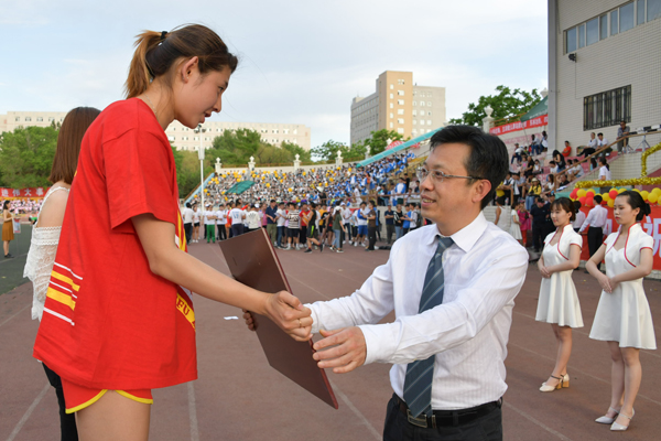 6月1日下午,学校第五十一届田径暨阳光体育运动会圆满完成各项赛程,在田径场举行了闭幕式。闭幕式由体育部直属党支部书记、主任孟令滨主持。