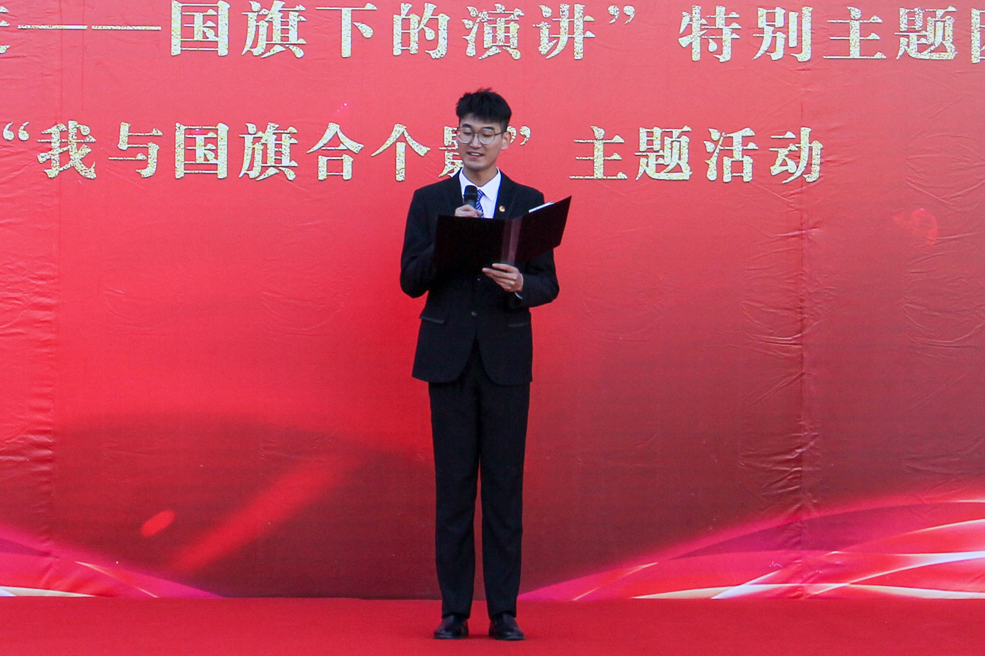 活动开始,全体师生高唱国歌,面向国旗,行注目礼,鲜艳的五星红旗冉冉升起。工程技术学院2017级森林工程专业一班高志勇同学、材料科学与工程学院2017级木材科学与工程专业(卓越)何澜同学作为优秀团员代表在国旗下演讲,他们表示作为新时代的东林青年要高举爱国主义伟大旗帜,学习知识,苦练本领,为实现中国梦贡献青春力量。他们讲到,在纪念“九一八”事变88周年之际,青年同学们应勿忘国耻、自立自强,站在新的历史起点上,不忘初心、牢记使命,争当时代新人。