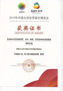 王玲教授课题代表黑龙江省和东北林业大学参加本届世园会,进行科研成果及相关产品展出参评并获得奖项,不仅获得了荣誉,也得到了将课题组的科研成果在国际级别的展会上得以展示的机会。