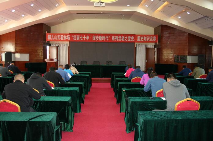 为了进一步激发林场职工爱党、爱国的热情,提高职工学习党史、国史的积极性和主动性, 9月20日,帽儿山实验林场党总支在会展中心一楼会议室举行了“壮丽七十年·阔步新时代”系列活动之党史、国史知识竞赛。本次活动采取现场答题(闭卷考试)的形式进行,答题前,大家积极准备、主动学习,答题中,大家全员参加、认真作答,通过开展此次知识竞赛活动,既丰富了主题活动的形式,又使林场职工更加深入地学习了党史、国史知识,进一步坚定了“守初心,记使命”的理想信念。
