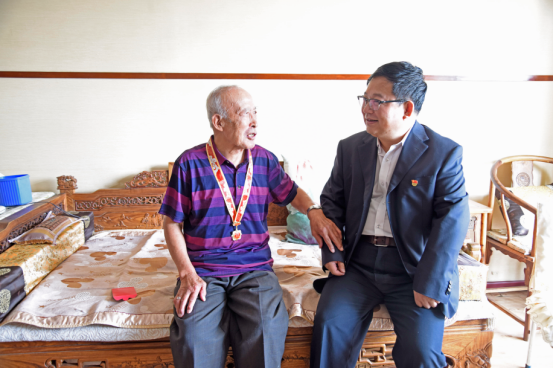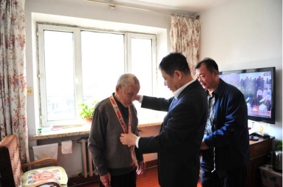 党委书记张志坤、校长李斌、党委副书记陈文慧分别走访看望了李坚院士、84岁的姚庆、93岁的任庆林、91岁的毛贵忠、93岁的孙廷俊、87岁的王杰、87岁的刘国恩、89岁的侯克忠等八位离退休老同志代表以及国家科学技术奖获得者代表付玉杰、谢延军两位老师。学校领导为他们颁发并佩戴了由中共中央、国务院和中央军委颁发的“庆祝中华人民共和国成立70周年纪念章”。