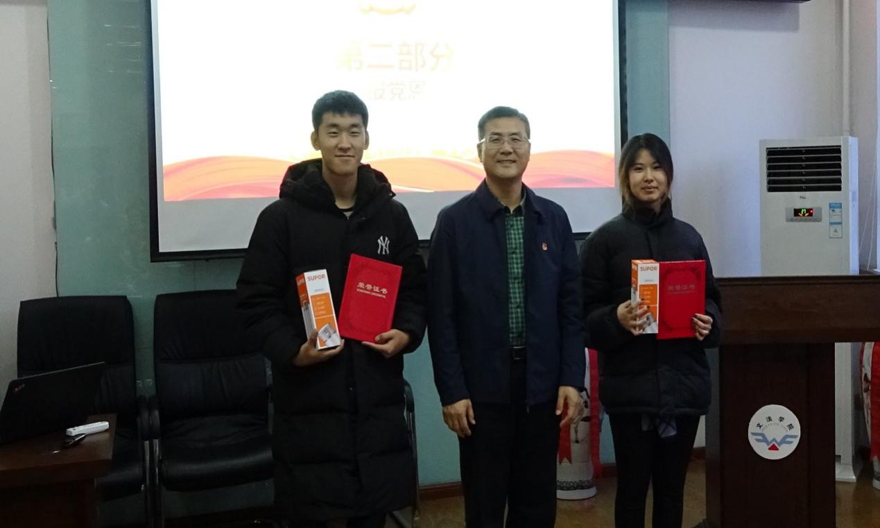 本次团日活动紧紧围绕“学党史、跟党走、报党恩”的主题,分“学党史,不忘初心;跟党走,砥砺前行;报党恩,牢记使命”三个版块进行。活动中,雒文虎副校长与同学们共同观看了彩色版的开国大典视频,回顾了激动人心的历史时刻;共同聆听了经典歌曲《在灿烂的阳光下》,品味中国共产党的浓浓恩情;共同观看了知识竞答互动环节,感受同学们乐学争先的青春风采;共同畅谈了在党的领导下,新中国取得伟大成就的认识和感受。知识竞答后,雒文虎副校长为获得学院“学习强国”学习先进个人的两位同学颁发了荣誉证书和奖品。