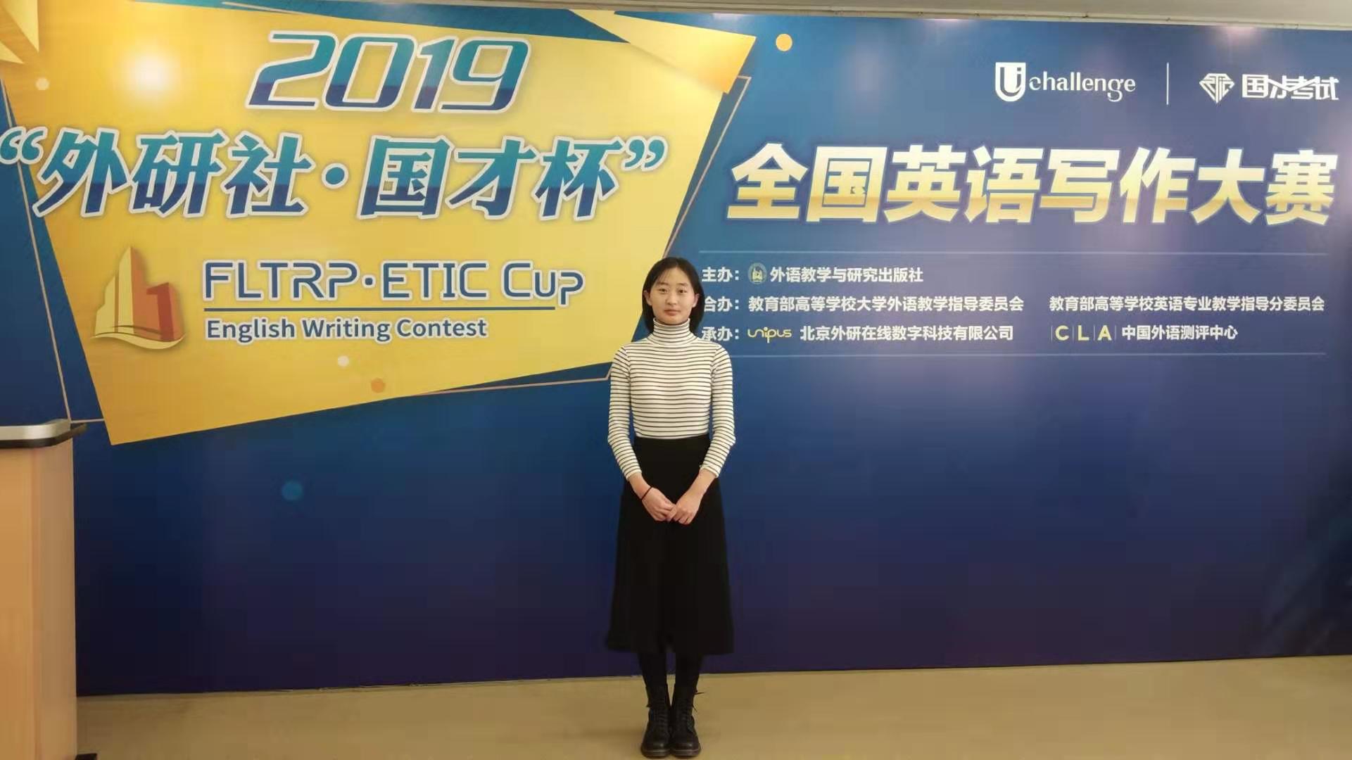 12月13日,2019“外研社·国才杯”大学生英语挑战赛(Uchallenge)于北京落幕。全国近400位风华少年分别在演讲、写作、阅读三大舞台尽显英姿,其中我校外国语学院英语专业盛诗雨同学在备战考研的同时抱病参加了写作大赛决赛并获得了全国二等奖。