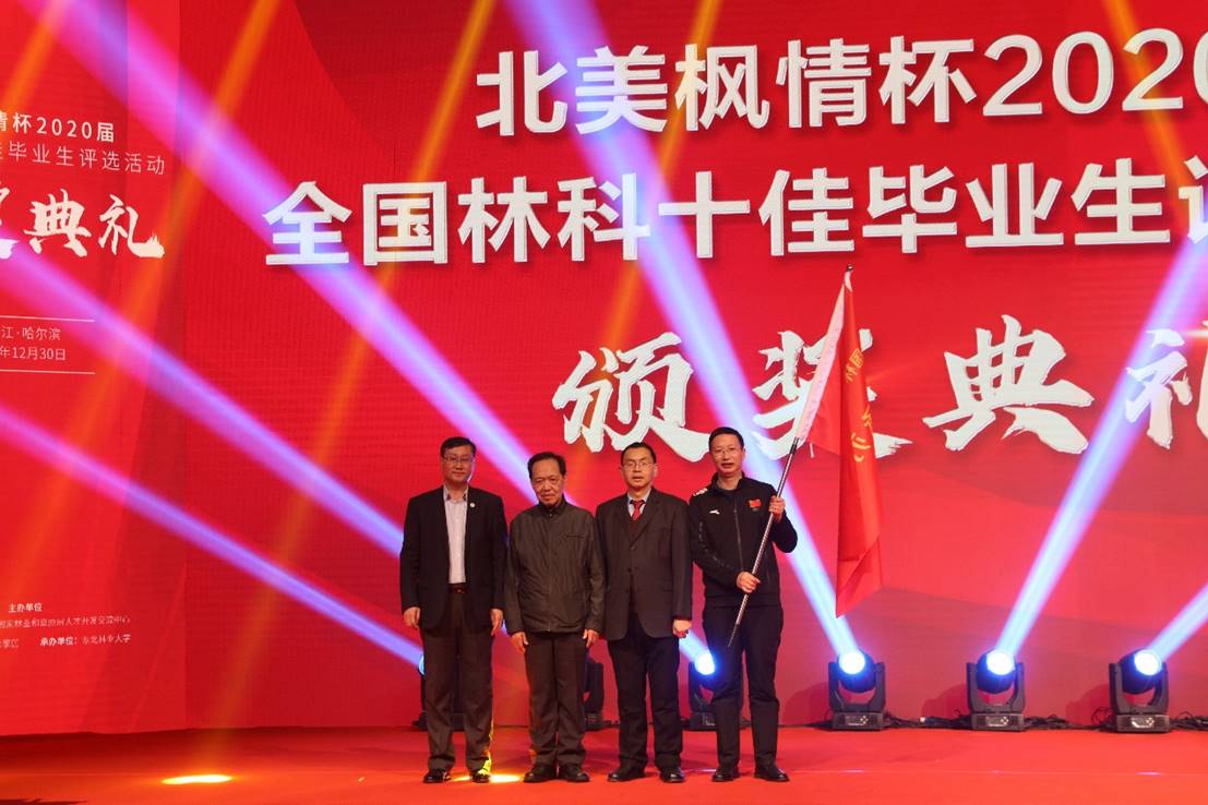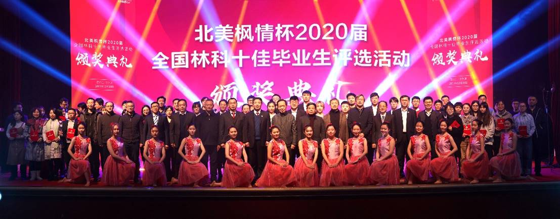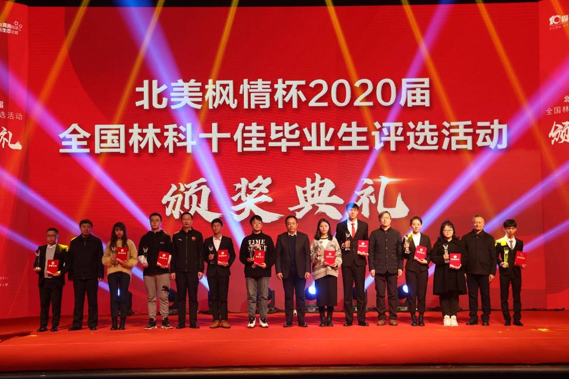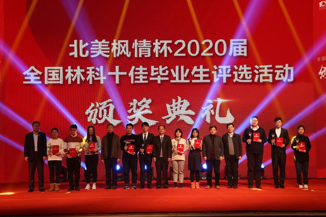 由中国林业教育学会、国家林业和草原局人才开发交流中心共同主办,我校承办的“北美枫情杯”2020届全国林科十佳毕业生评选颁奖典礼,于12月30日在我校科学会堂成功举行。