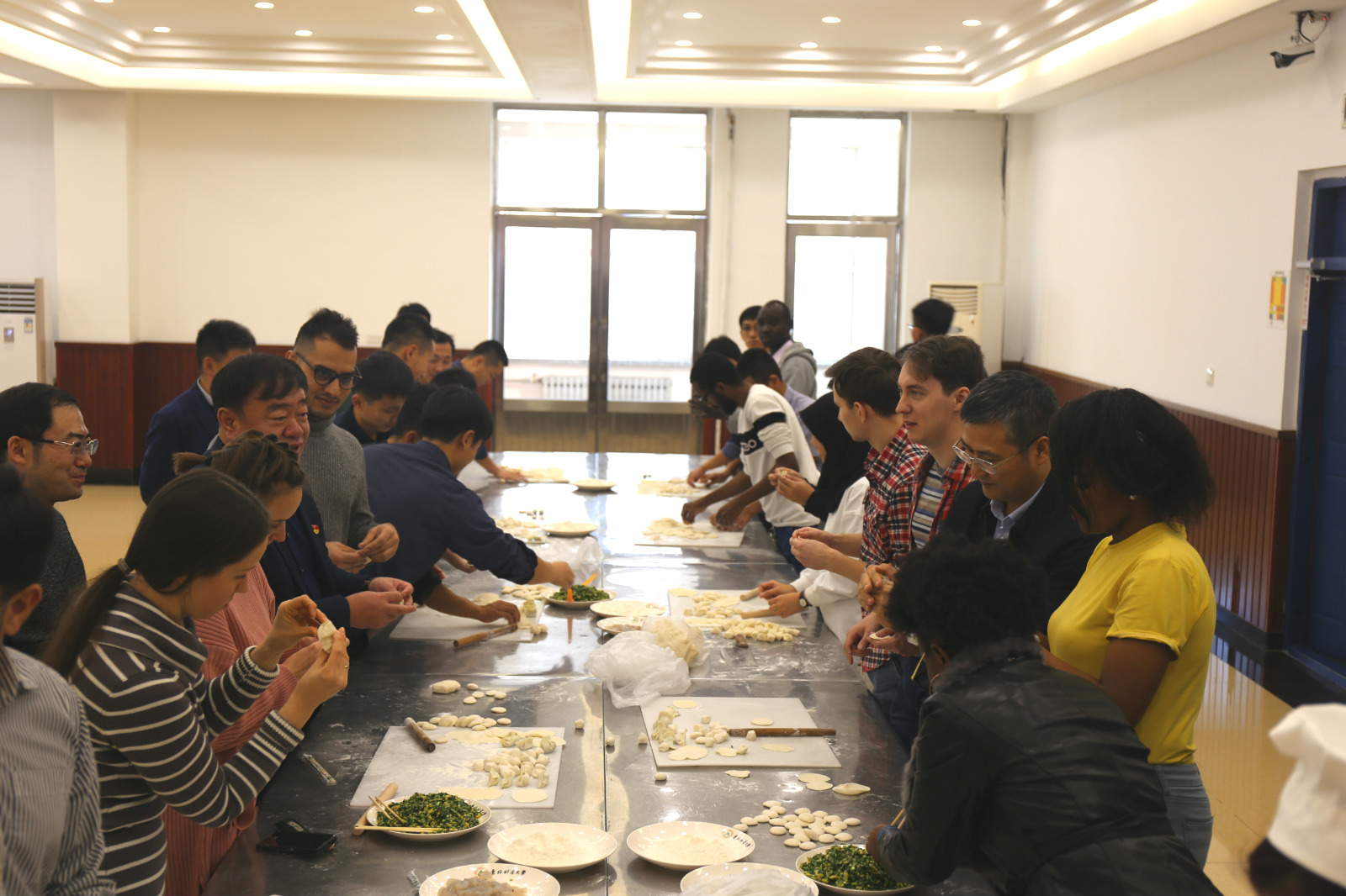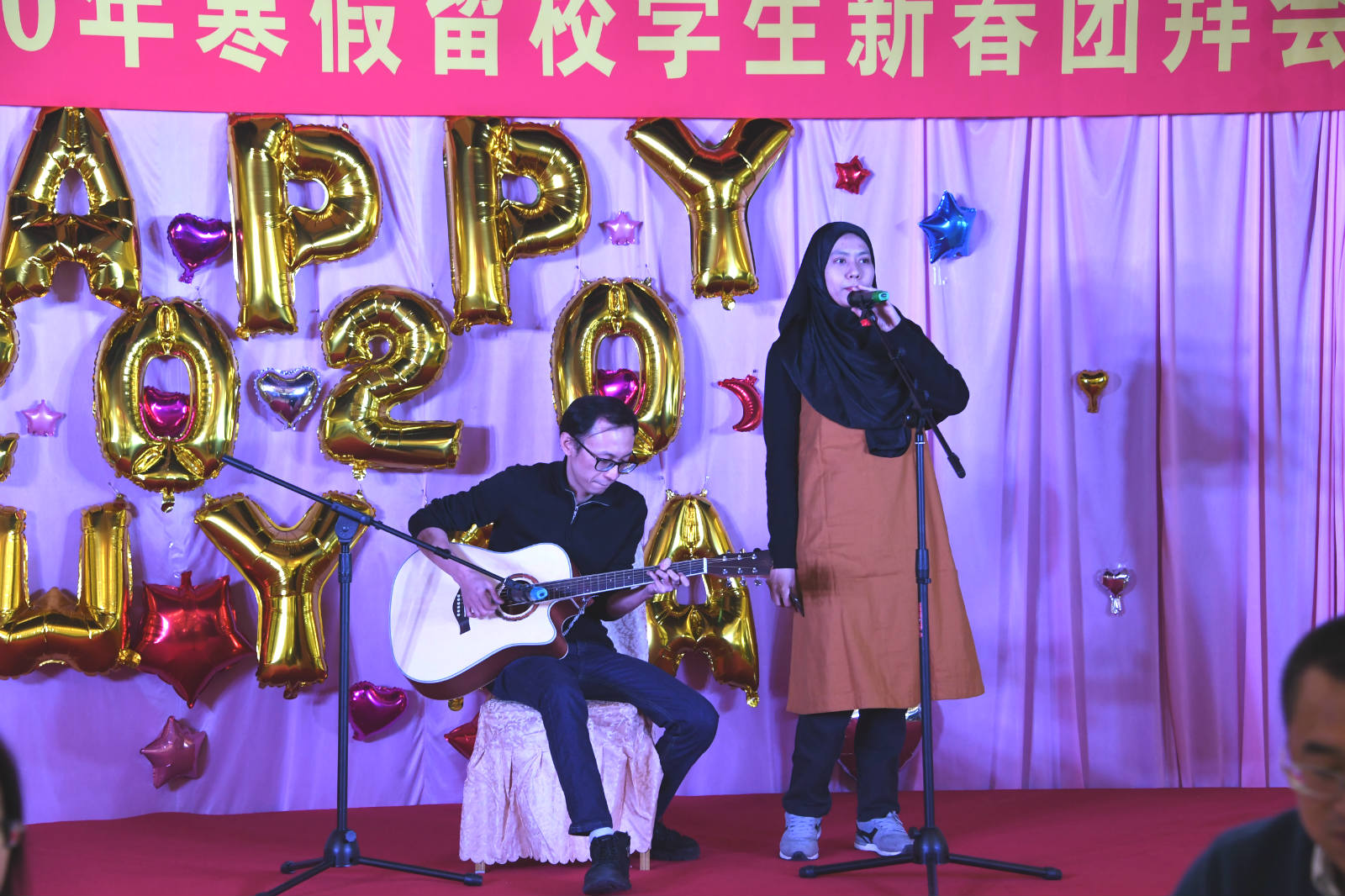 团拜会上,学校领导与留校学生和留学生代表一起包饺子,亲切地询问大家在寒假期间的学习和生活情况。大学生艺术团的同学们和留学生代表献上了精彩纷呈的文艺节目,学校领导还依次来到同学们身边,向他们及家人致以新春的问候。