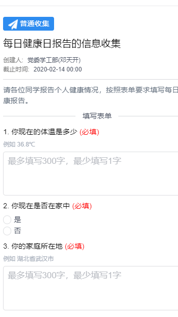 各学院辅导员和班主任纷纷利用今日校园、企业微信、钉钉App等移动互联网新技术开展学生健康情况排查和疫情摸排。形成了学生每日打卡、人员分级管理、数据定期汇报的高效学生情况反馈模式,做到了数据准、底数清、全覆盖。各学院学生工作组还利用学院微信公众号、新浪微博等社交媒体和抖音、快手等短视频平台,录制鼓劲打气视频和防疫短片,开展各类防疫预防和宣传教育活动。在增强战“疫”必胜的信心和学生居家自我保护意识的同时,引领学生做理性平和守法遵规的“宅一族”。