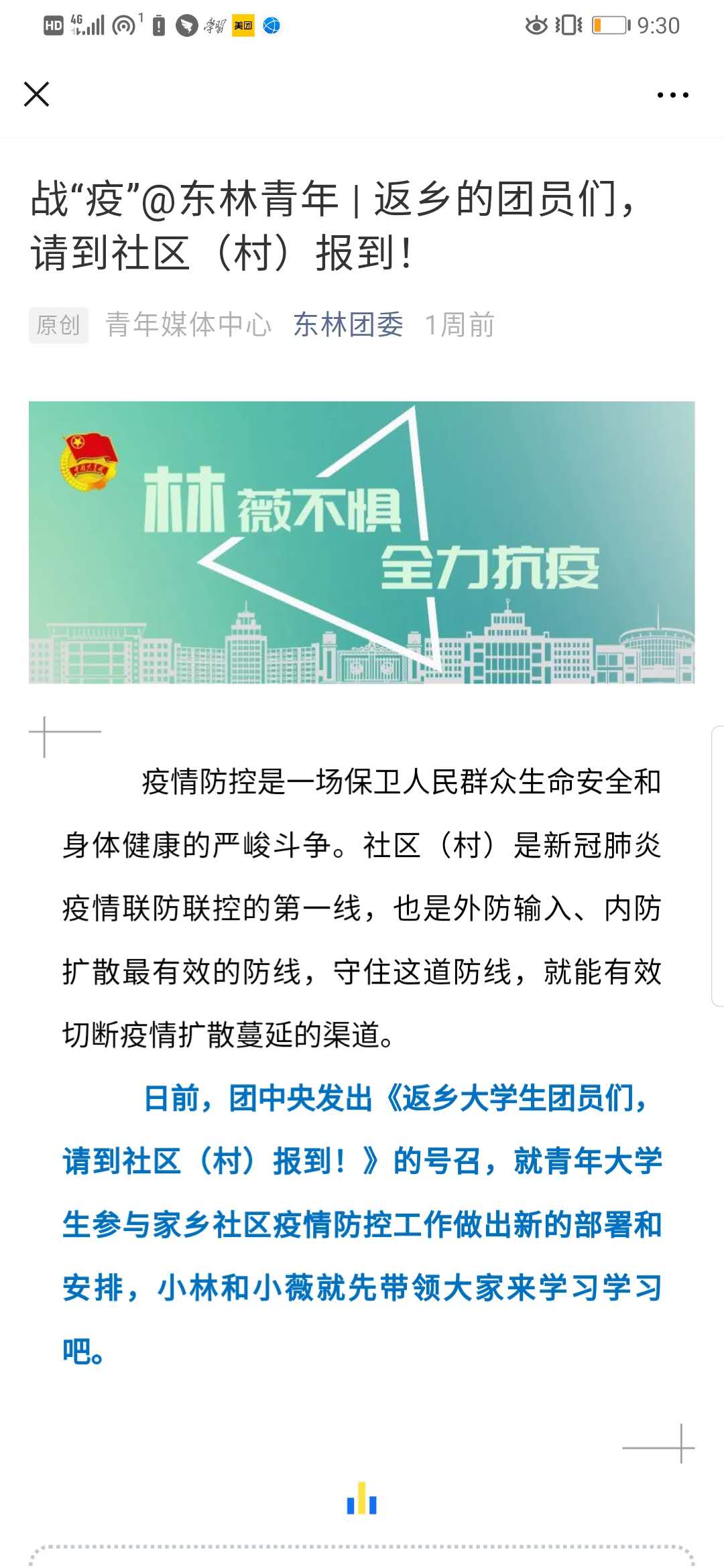 校团委鼓励返乡团员到所在社区报到,大量优秀的东林学子充实到抗击疫情的志愿服务一线,展现了东林学子危难之时勇于担当的使命感和责任感;通过招募疫情防控一线人员子女线上辅导志愿者,用实际行动助力“最美逆行者”;举办了“勇担青春使命、积极投身战‘疫’”主题网络文化系列活动,两周之内收到各类作品436份。
