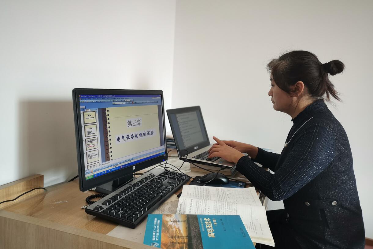 机械设计制造及其自动化专业教师、党支部书记贾娜,围绕网上授课做了精心准备,帮助学生提前下载了试读的电子书,使课件更有利于网络授课。为了减少对家中备战高考孩子的影响,她使用耳机压低声音多次自我测试,仔细调整设备和软件状态,借助手写板、录屏等方式,为学生自学和复习创造便利条件。