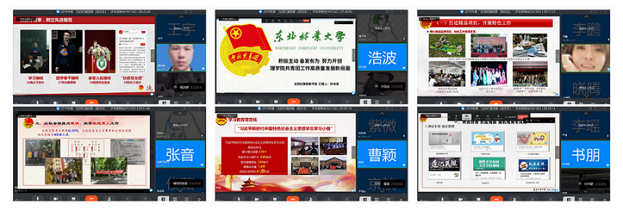 会上,各学院团委(团总支)书记按照抽签顺序依次汇报,通过线上分享精心准备的PPT或视频等形式,围绕共青团工作的根本任务、政治责任和工作主线,从思想引领、组织建设、社会实践、志愿服务、科技创新、校园文化建设等方面,特别是围绕纪念“五四运动”100周年、“青春告白祖国”纪念新中国成立70周年等主题教育活动的开展,对本单位过去一年的共青团工作进行了总结和汇报。各学院团委(团总支)也结合自身工作实际,重点汇报了在新冠肺炎疫情防控阻击战中,所开展的思想引领、宣传教育以及组织动员、志愿服务等防疫相关工作。同时,各学院团委(团总支)理性、客观地梳理了工作中存在的问题与不足,明确了今后工作的努力方向和改进目标。