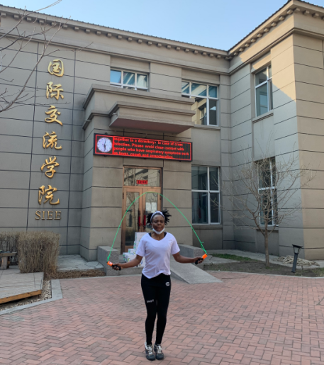 “宅在宿舍里,除了规律生活和正常学习之外,更应主动参与身心锻炼,这是我在学院公众号上看到的心理专家说的,觉得很有道理,所以第一个报名了跳绳比赛。”肯尼亚学生楚拉表示,活动通知发布以后,楚拉每天都会在学院健身房进行练习,终于以两分钟跳绳383次,获得男子组冠军,可谓“功夫不负有心人”。“疫情期间,我跟着群里发送的居家锻炼视频学到了很多,这些视频都是学校的体育老师为我们专门录制的,我添加了老师的微信,经常探讨锻炼技巧呢。”埃塞俄比亚学生迈依兴奋地说。
