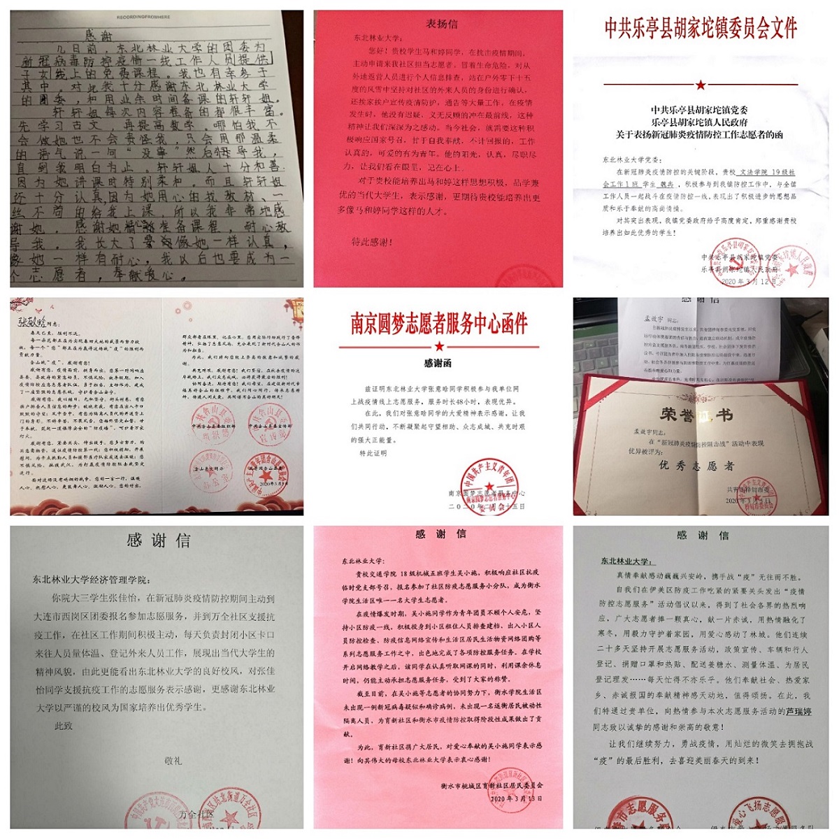 多地政府、部门给学校、学院发来感谢信、表扬信