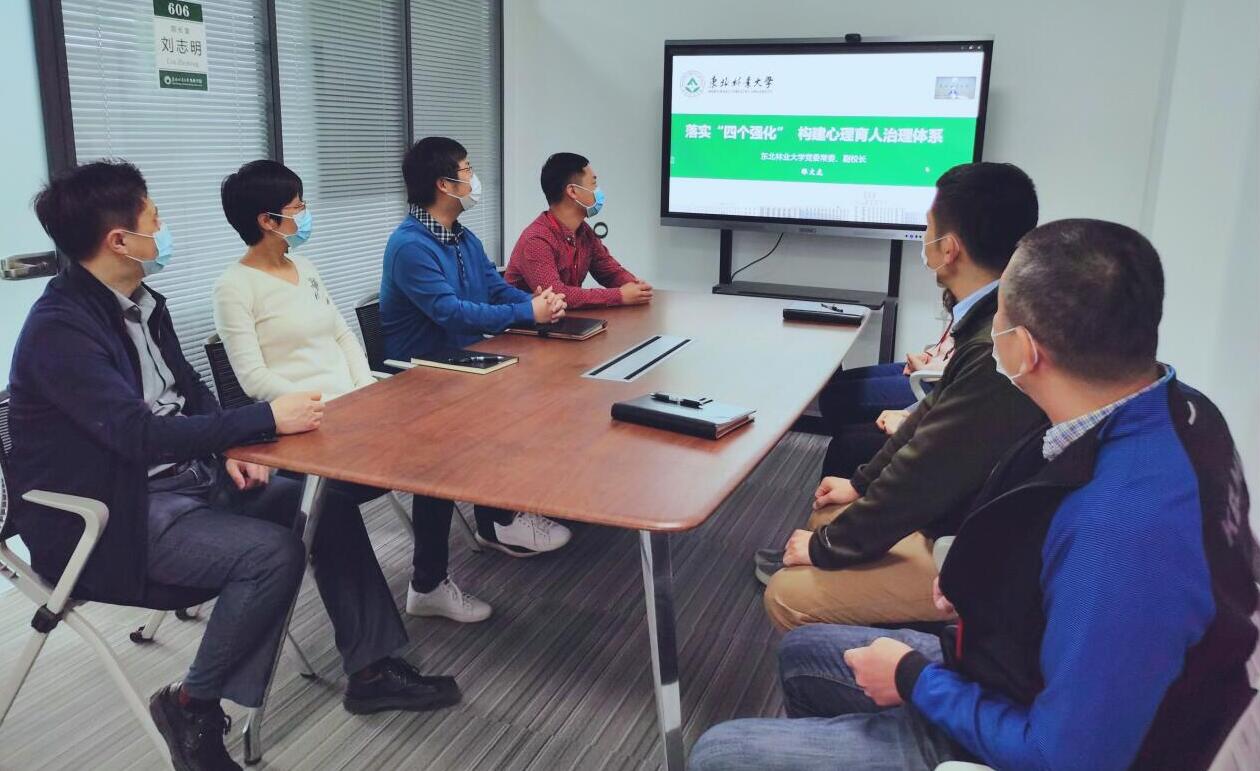 我校积极应对学生心理健康工作面临的挑战,高度重视大学生心理健康教育工作。2020年1月初,学校专门召开党委常委(扩大)会研究部署大学生心理健康教育工作。学校制定出台了《大学生心理健康教育实施方案》《学生心理危机干预实施办法》《疫情防控心理健康教育专项工作预案》等制度文件,积极开展“疫后综合征”防控工作。摸清底数,建立重点关注学生台账,一人一策进行不间断帮扶。建立学校、家庭、社会三位一体联动机制,学校、学院、班级、寝室四级联防联育机制,统筹推进建设学院二级心理教育工作站,探索构建符合我校实际、具有我校特色的心理育人治理体系。